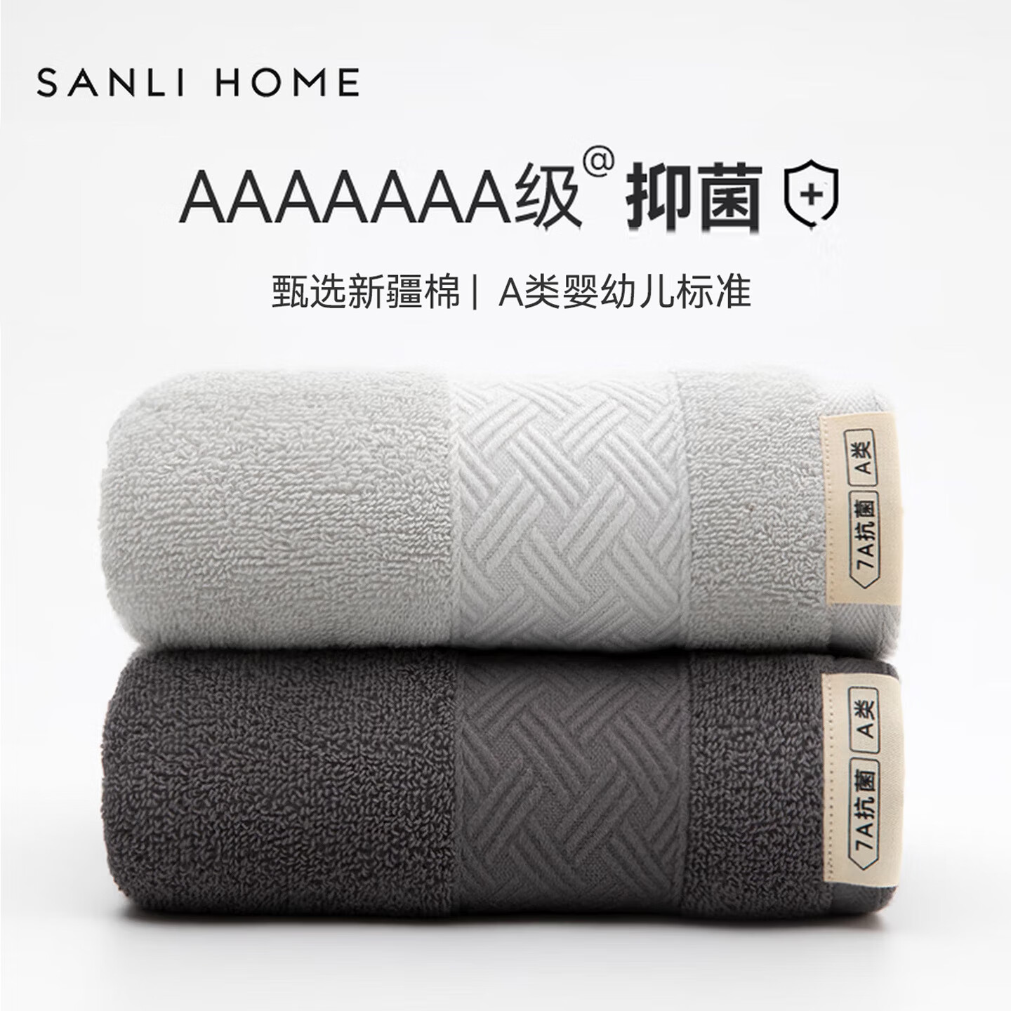 三利毛巾高端柔软五星酒店加厚男士洗澡专用纯棉100%不易掉毛面巾2条