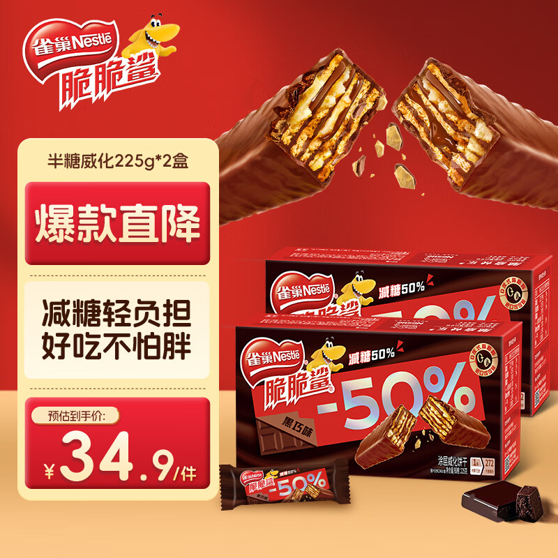雀巢(Nestle)脆脆鲨巧克力草莓芝士茉莉雪芽24条裸威化夹心饼干280.8g办公室