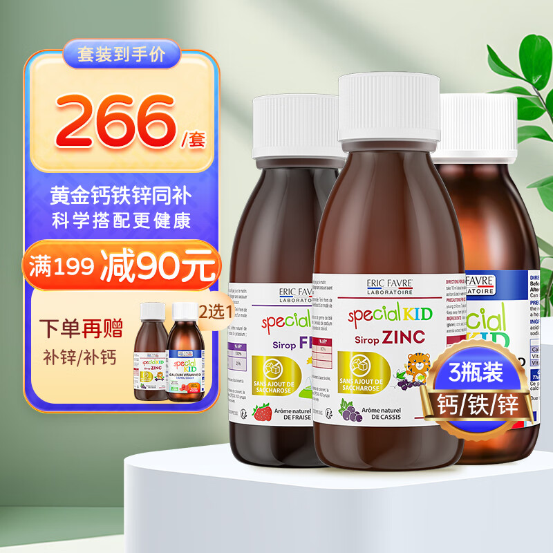 ERIC FAVRE艾瑞可钙铁锌儿童婴儿婴幼儿宝宝补铁补钙补锌口服液 钙铁锌组合装 125ml*3瓶