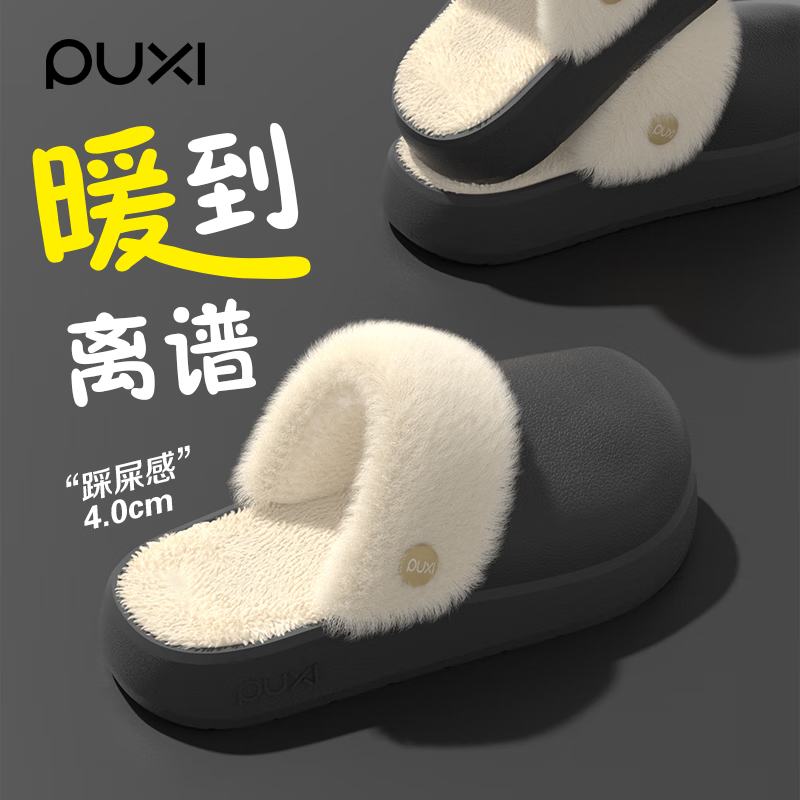 朴西冬季防水棉拖鞋女加绒保暖室内家居可拆卸厚底防滑静音情侣棉拖男 黑色 36-37 适合(35-36)