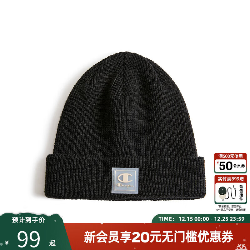 Champion冠军毛线帽 秋季情侣针织帽女冷帽 男冬季保暖显脸小新款 黑色 均码