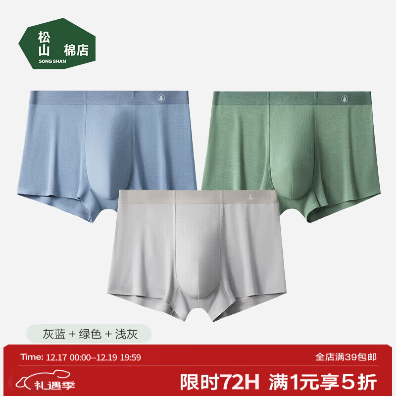 松山棉店莫代尔男士内裤抑菌透气弹力不勒加大平角内裤无痕舒适【3条装】 【经典款】灰蓝+绿色+浅灰 3条 M (推荐115-130斤)