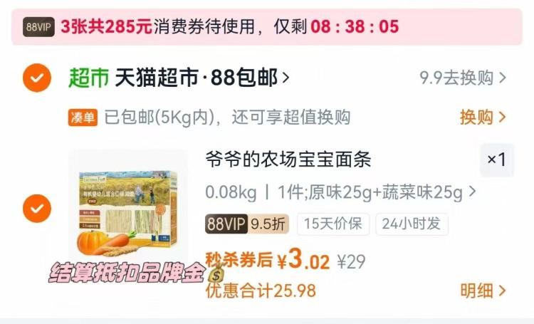 速爷爷的农场宝宝面条0元 超搜“爷爷的农场”领3品牌金
