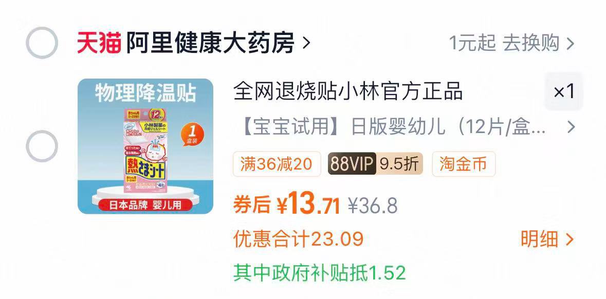 小林退热贴冰凉儿童冰敷不包邮 桃金币补贴后10.9亓 小林退热贴冰凉儿童冰敷不包邮