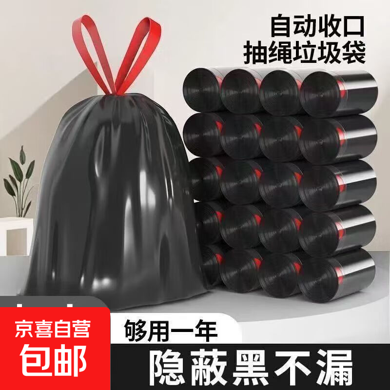 房车用品大卷抽绳式黑色家用车用垃圾袋加厚手提式 黑色加厚45*45cm 10只