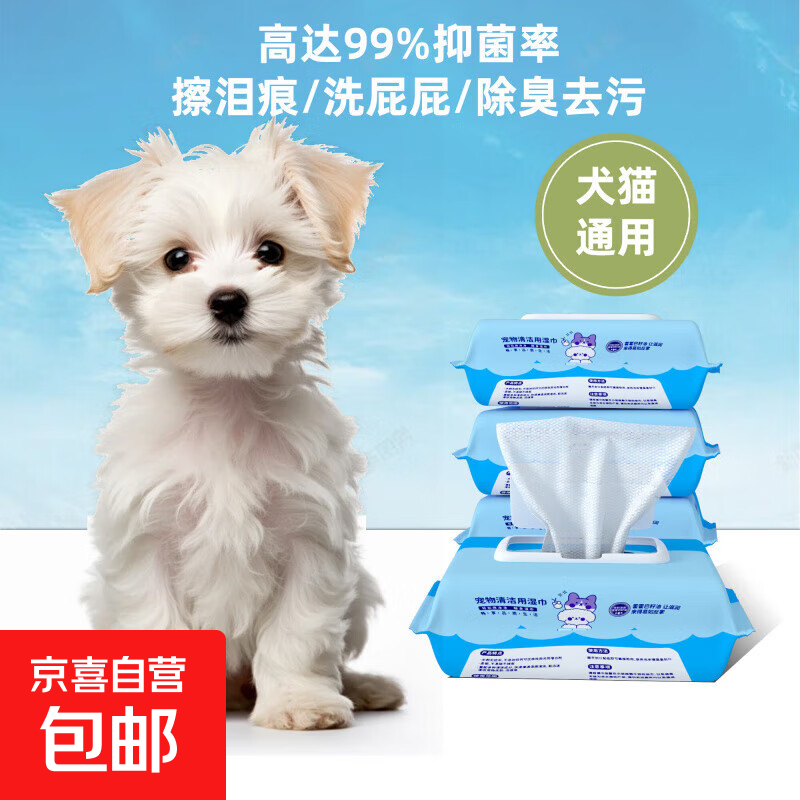 宠物湿巾猫咪狗狗专用湿巾纸免洗擦脚泪痕清洁用品湿纸巾60片 宠物清洁湿巾 1包