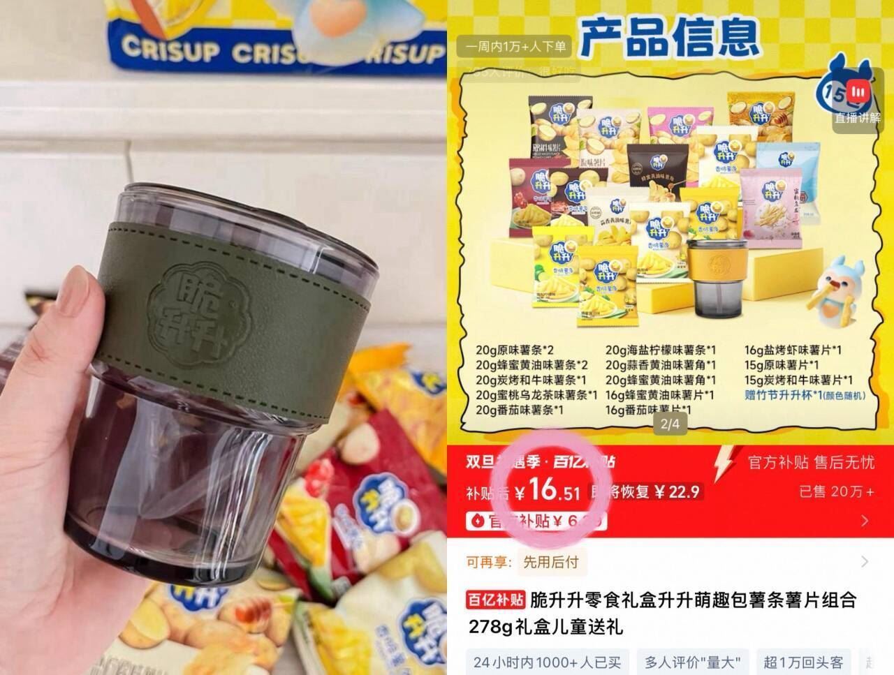 1/袋脆升升萌趣包降了 15袋+升升杯1个元. 一箱直接搞定追剧解馋零食~