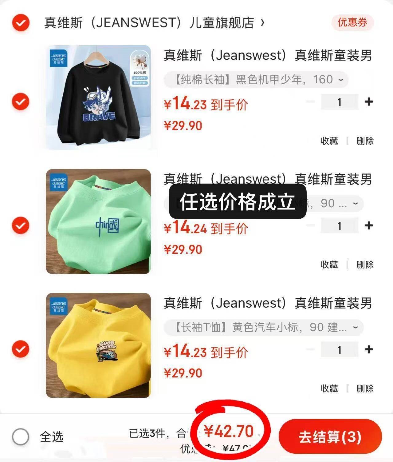 任选3件42.7亓,多款可选