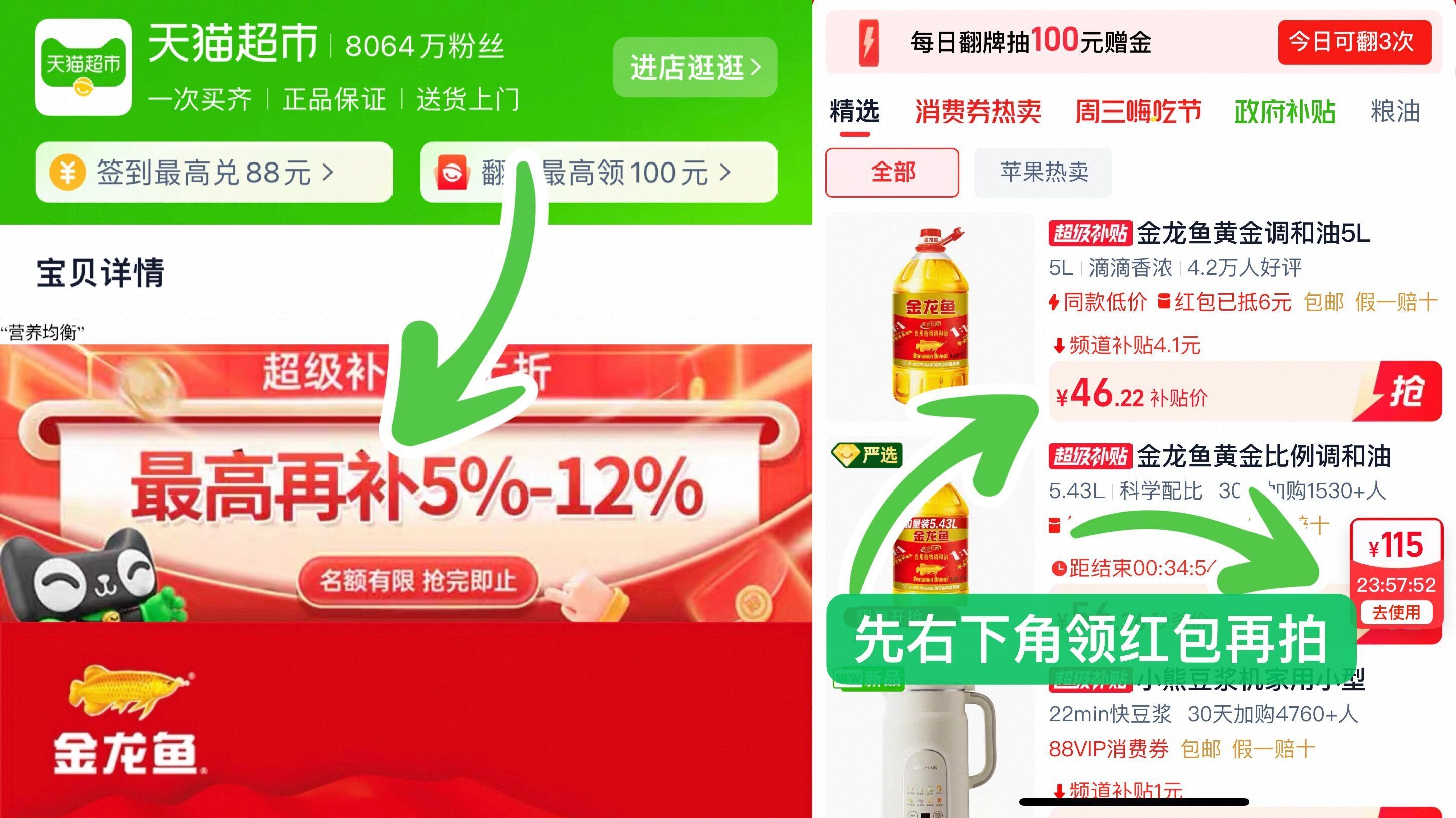vip 46.2亓 下拉详情,右下角领虹包拍 金龙鱼 食用调和油5L