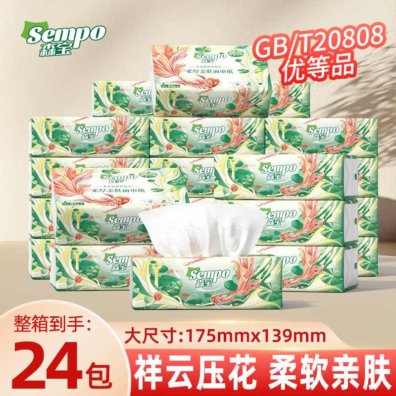 9.9元 森宝旗舰店 森宝锦鲤加厚卫生抽纸10包