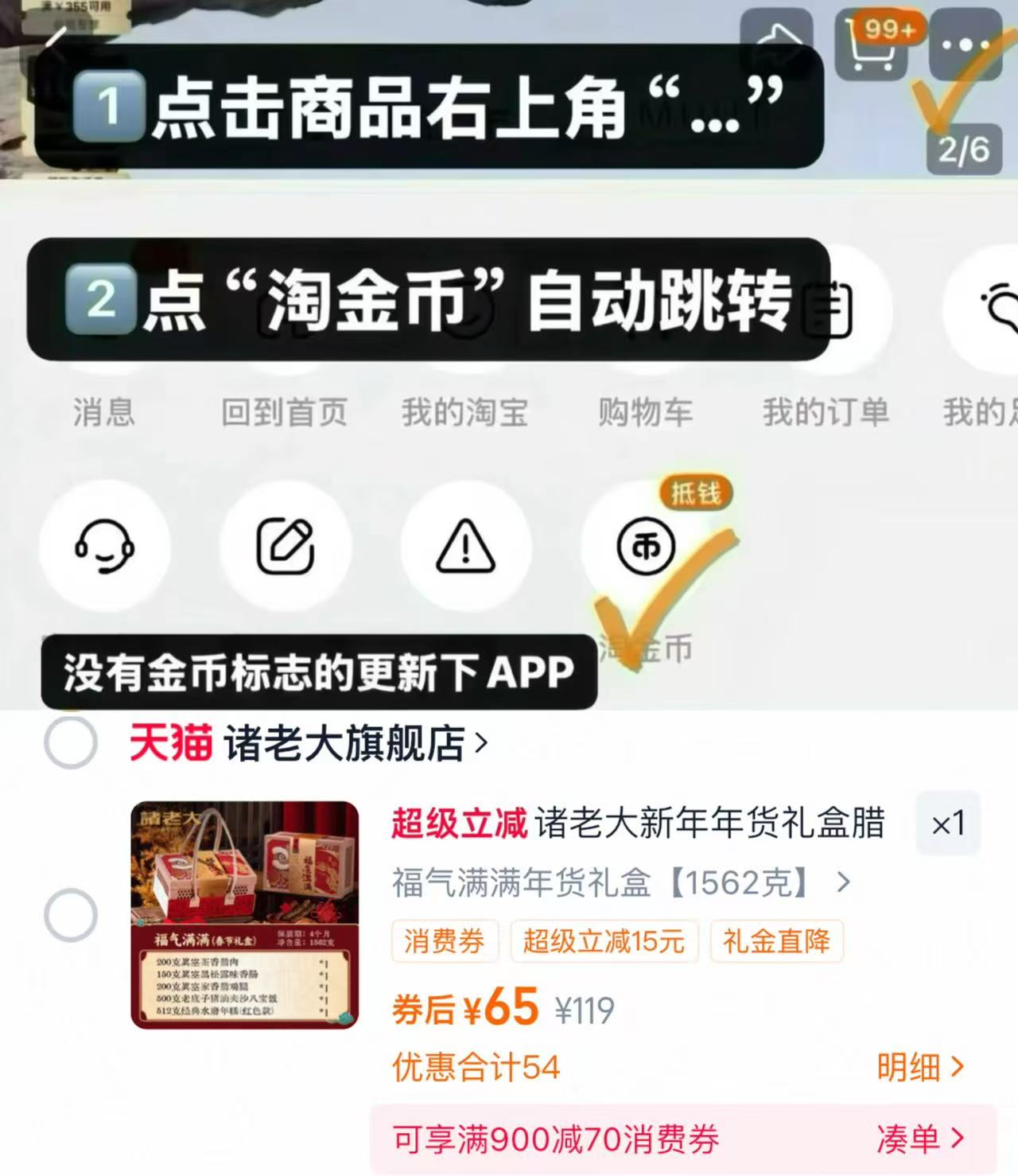 65元 诸老大旗舰店 诸老大腊肉福气满满礼盒1562g 主图右上角三个点-淘金帀抵扣