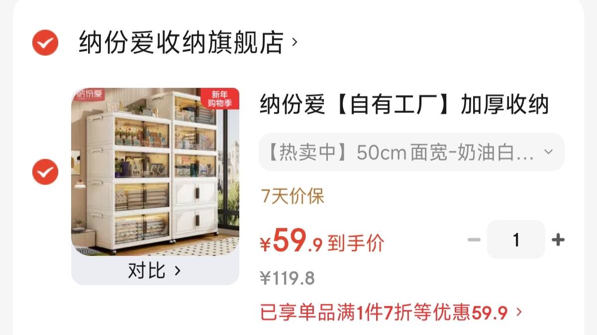 纳份爱可折叠免安装收纳柜 长50*宽25cm*层59元! 领