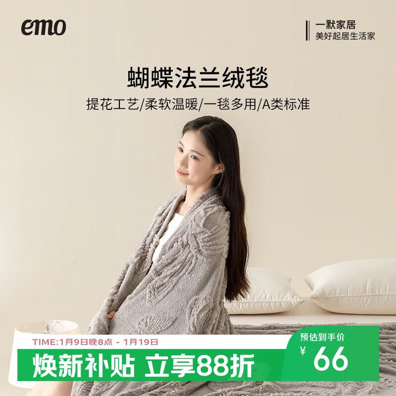 一默家居床品集 蝴蝶法兰绒毯1.5*2米36元 领