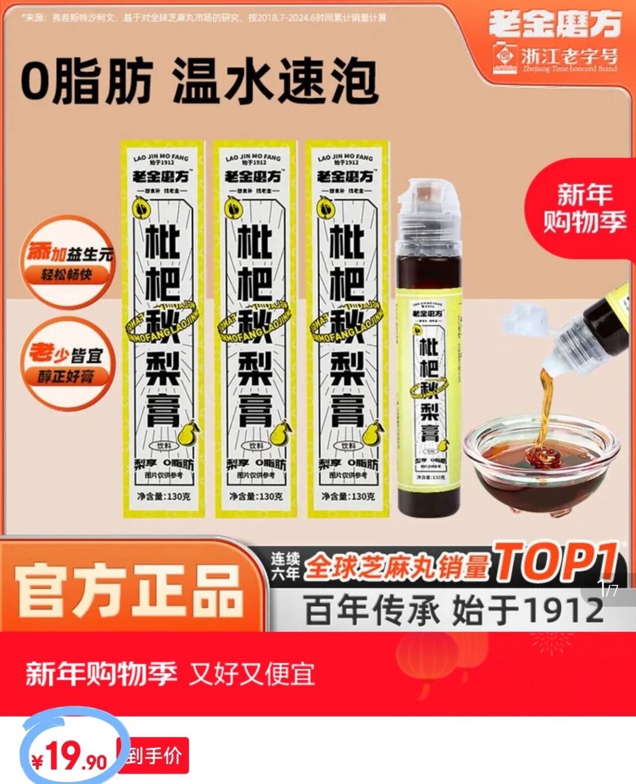 老金磨方枇杷秋梨膏瓶装 130g*3盒,拍下19元.9 折6.6元/盒,润喉护嗓