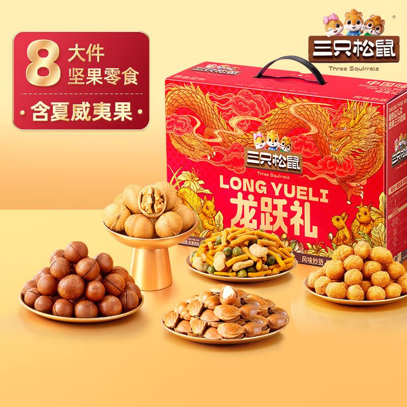 先领80-30补贴卷 三只松鼠 龙跃礼坚果礼盒1035g 拍2件59.9元;才折29.9元/箱