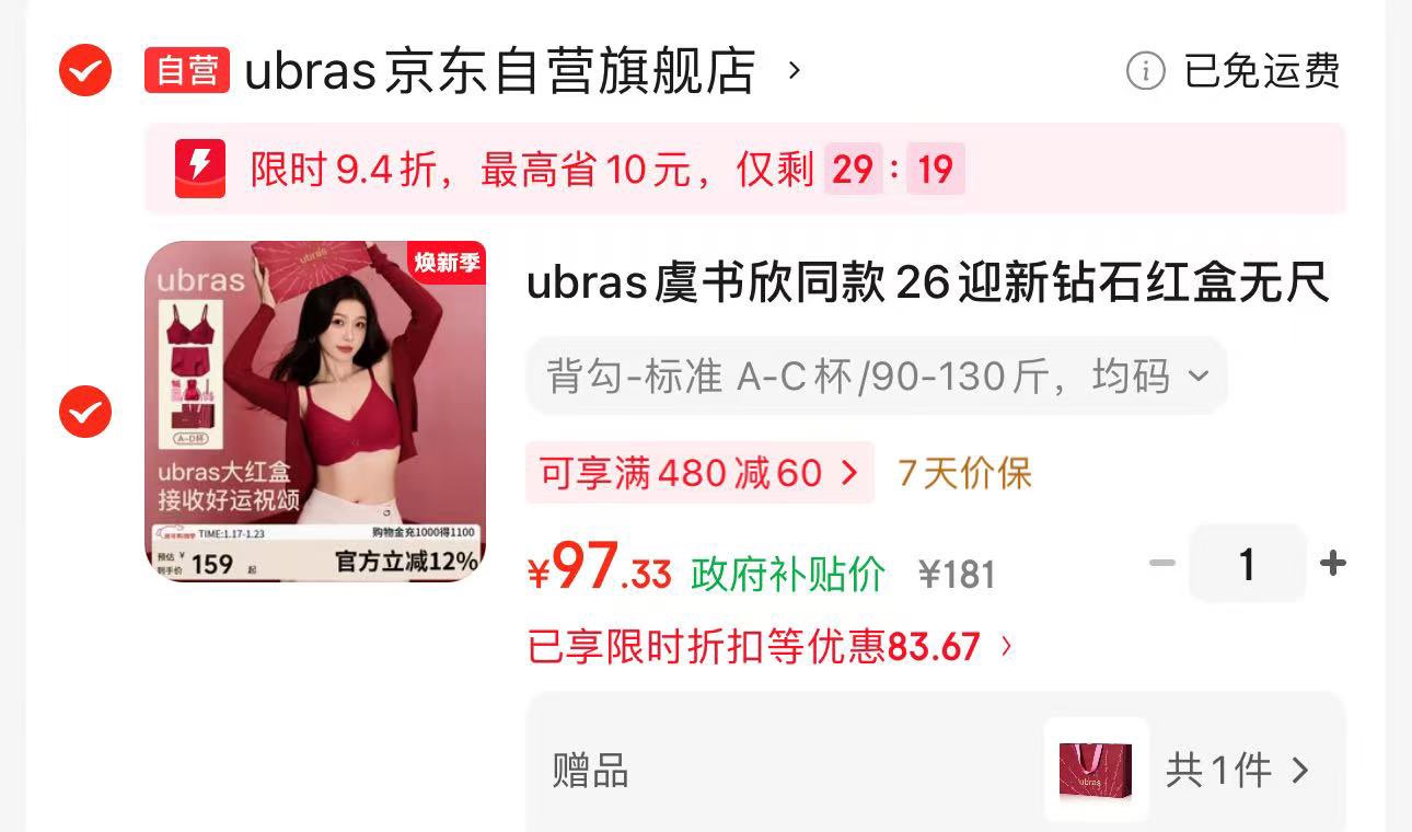 ubras虞书欣同款26迎新红盒内衣