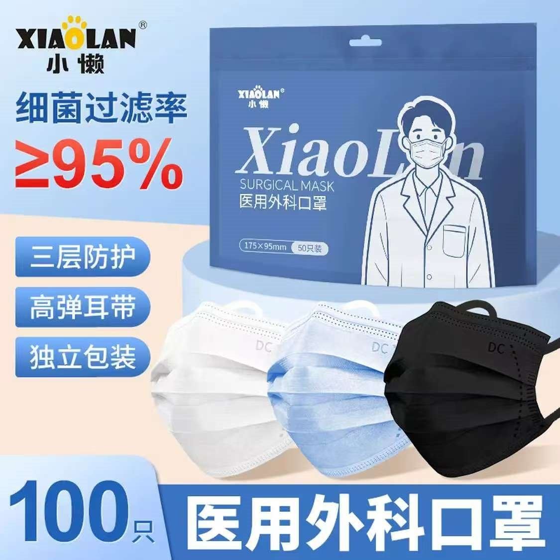 小懒 医用外科口罩100只