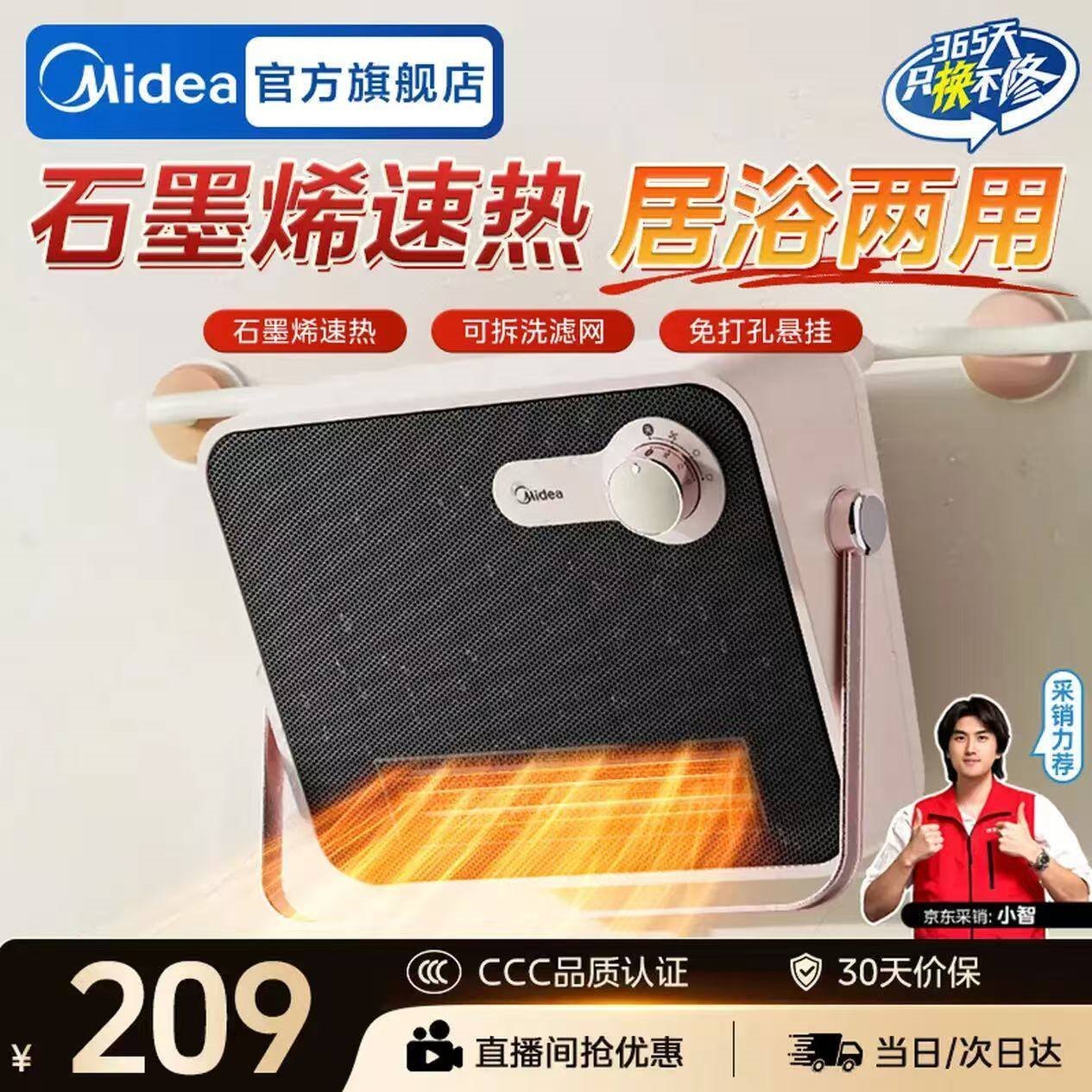冬季应季刚.需 先领2张卷 美的 壁挂浴室暖风机取暖器