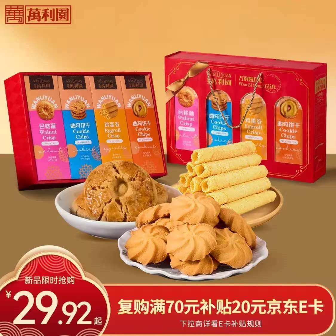萬利園 曲奇蛋卷合桃酥礼盒800g 25.9亓自营包邮,新客减1亓 *蛋香浓郁 自吃/送礼都不错~