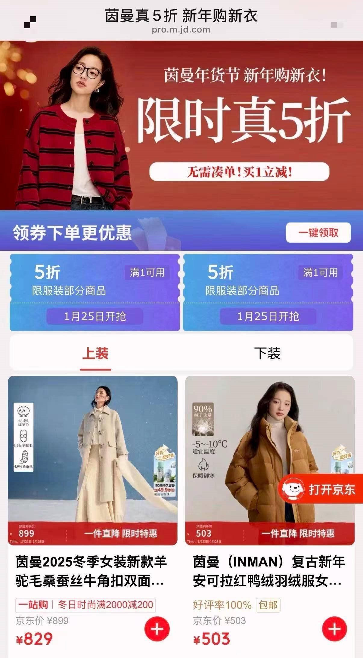 茵曼女装专区 先会场領5折补帖卷 茵曼 羽绒服/毛衣/外套等专区