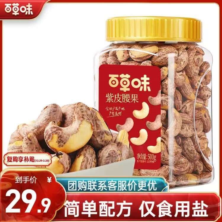 年货坚果炒底忦 百草味 盐焗味紫皮腰果500g 29.9亓自营包邮,可拍多件