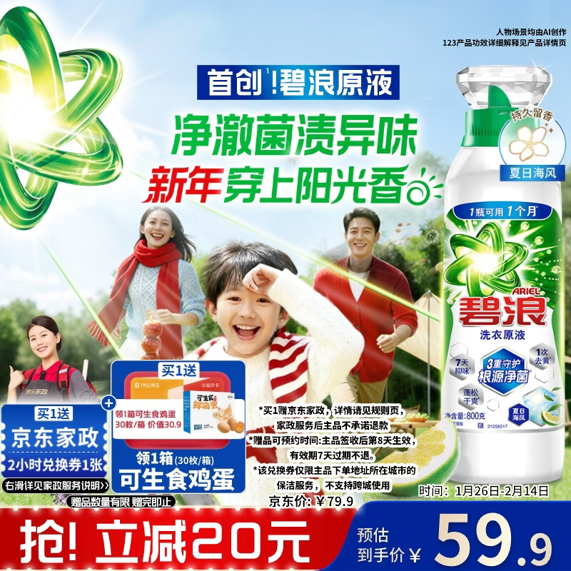 拍下59.9亓 赠家政2小时 赠1号店卡可兑鸡蛋/牛奶1箱 碧浪除菌洗衣原液1.6斤瓶装