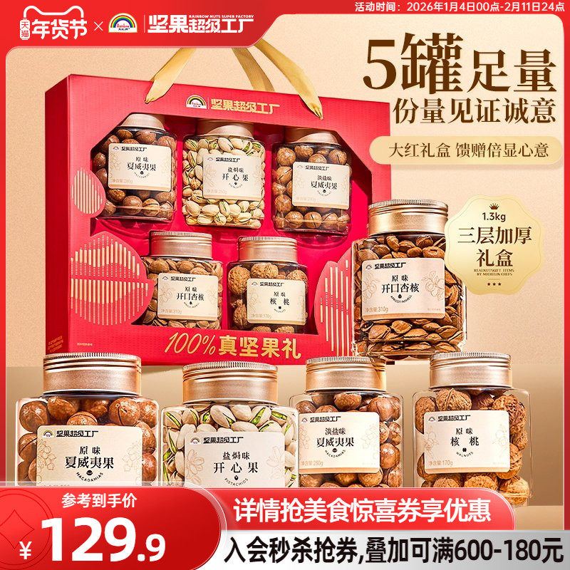 快必要反复领2次卷 天虹牌纯坚果礼盒1.3kg5罐 右上角…陶金币拍2,折91元/件