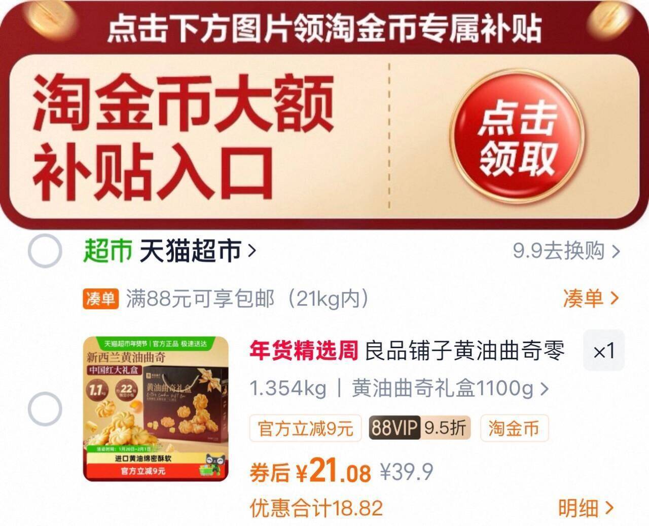 下拉详情拍,21亓 良品铺子 黄油曲奇礼盒1100g