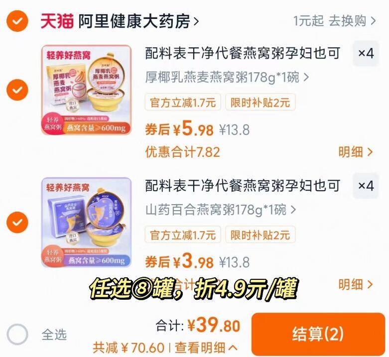 0点开始折4.9亓/碗 任选8件39.8亓,2口味任选 苏怀玉 燕窝粥178g*8碗