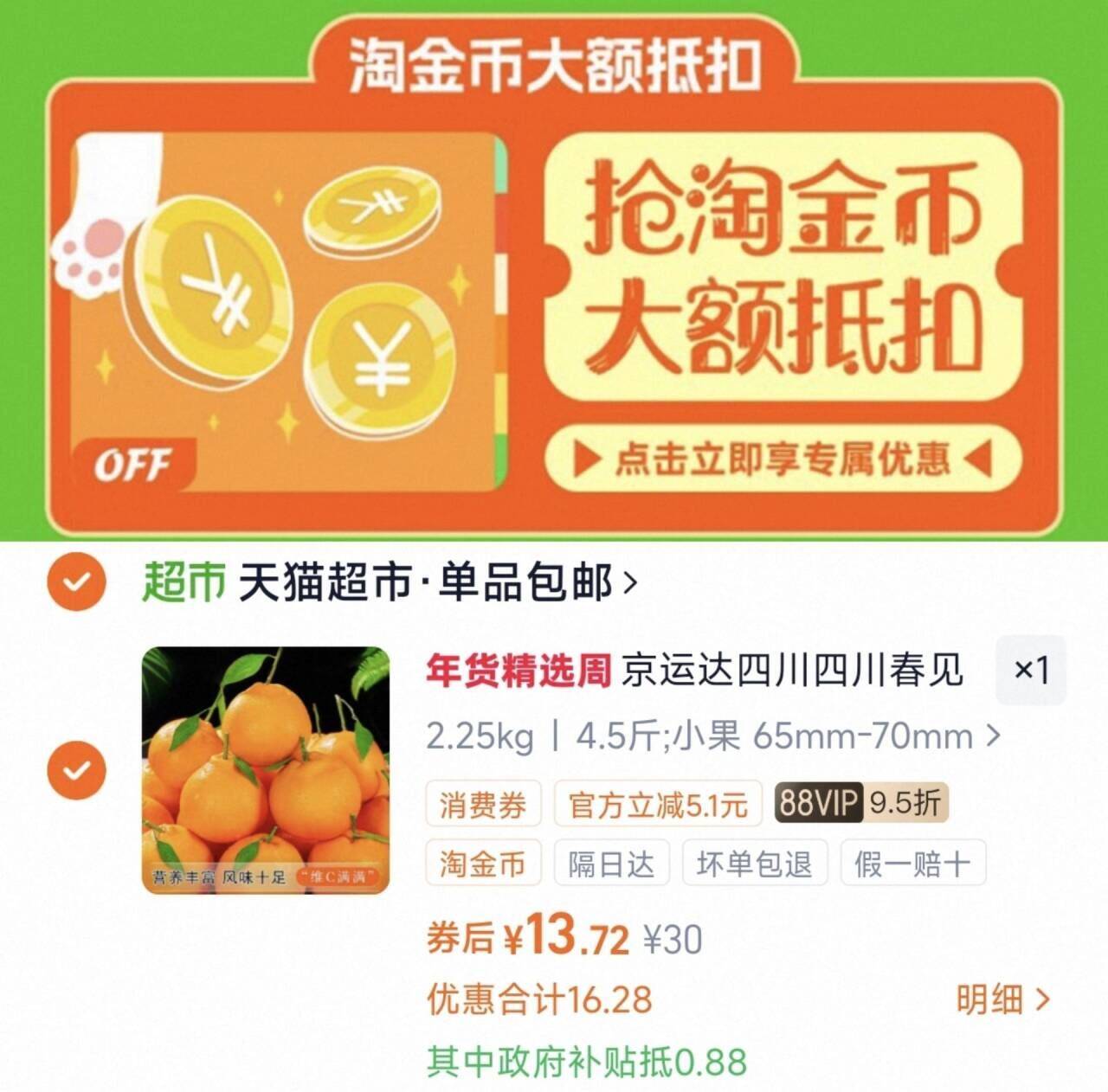 下拉详情 国补,13.7亓 四川春见耙耙柑4.5斤