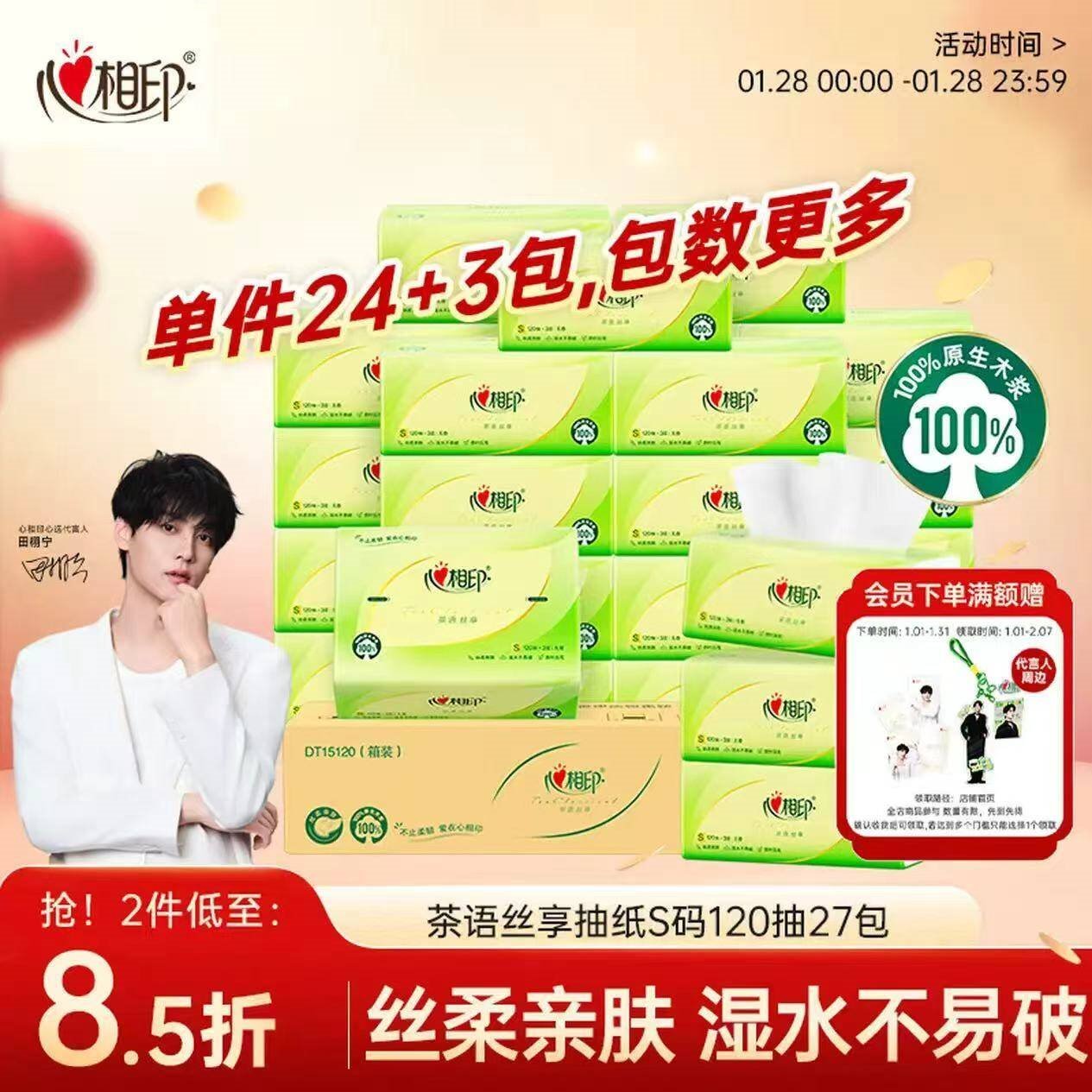 快心相印豪車 自营 心相印 茶语丝享 抽纸S码 3层*120抽*27包