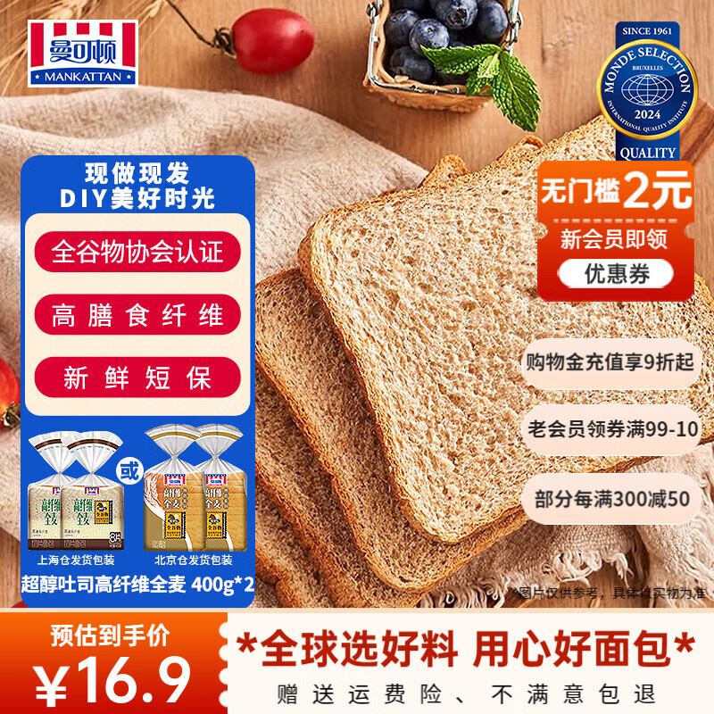 先领11-3卷 曼可顿早餐合集 13.9元 特选高纤维全麦吐司 400g*2