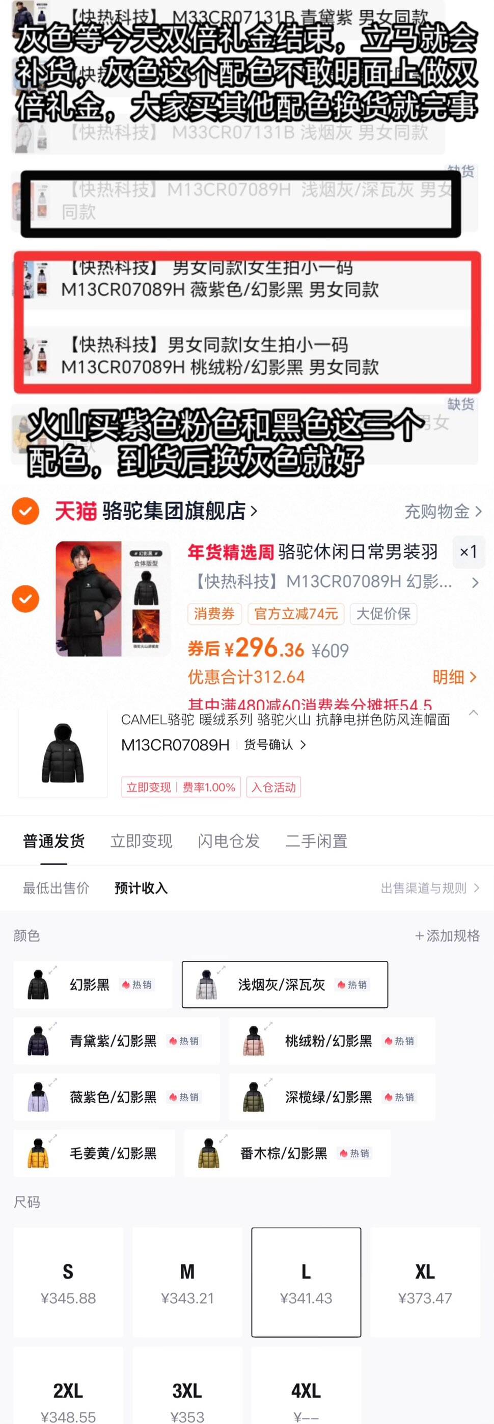 可先拍其他配色,到货再换灰
