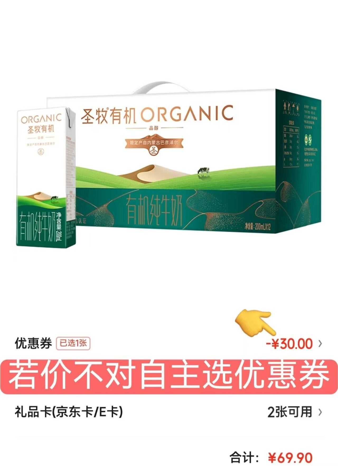 圣牧牛奶发車 自营 有机纯牛奶200ml*12盒 买3件69.9亓,才23.3亓/箱