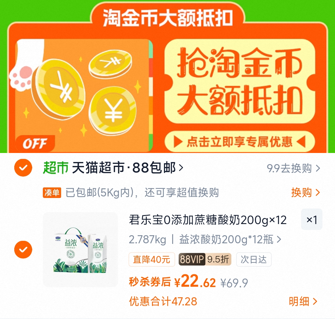 下拉详情拍,22.6亓 折1.8亓/盒 君乐宝益浓酸奶200g*12瓶