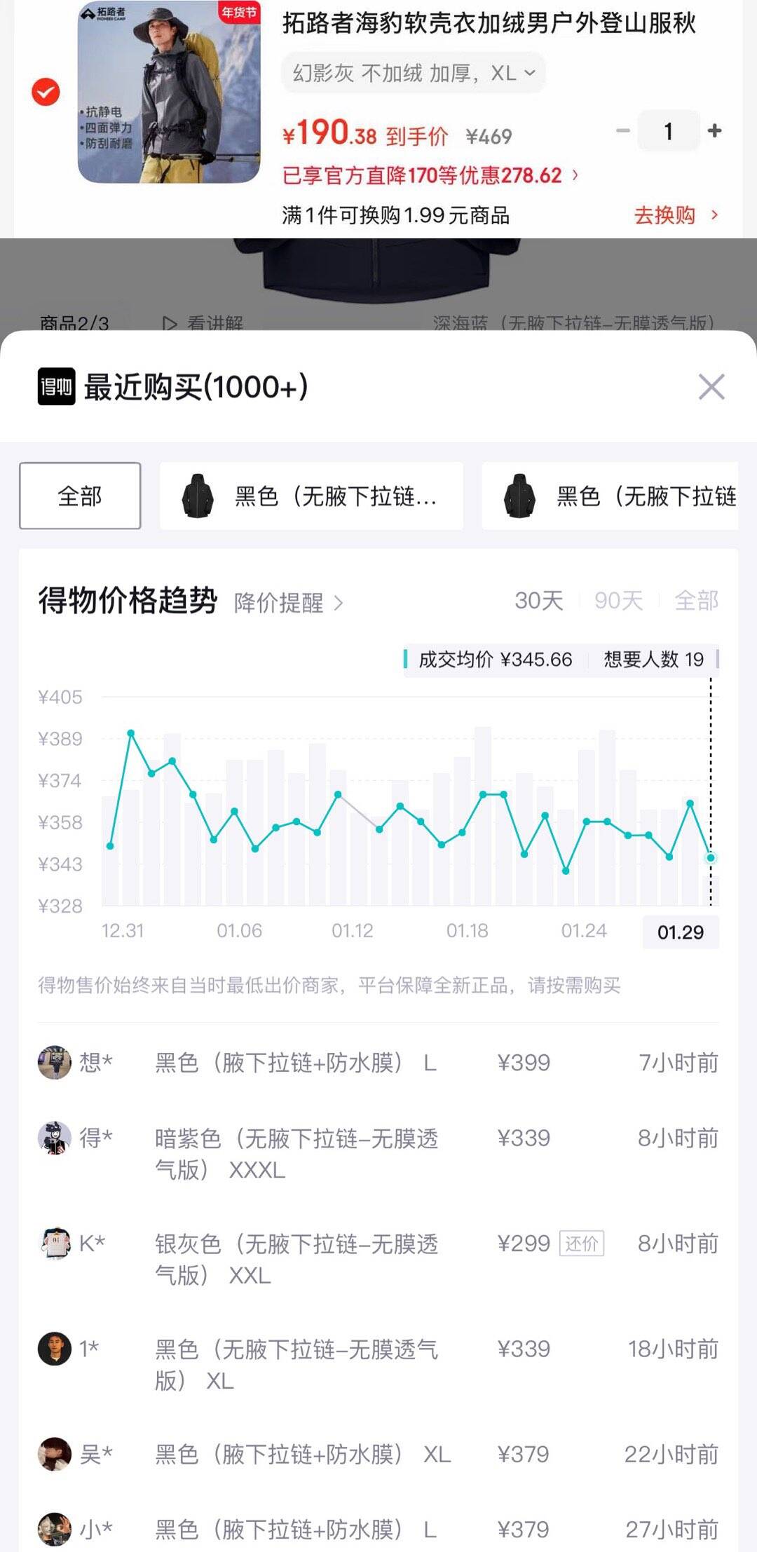 拓路者海豹软壳 到手190锝物320 货号:XHW303003L2 凑单