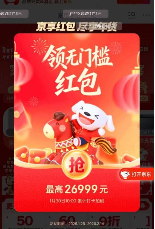 京东超红,日常三次先领取了 早上10点,累计打卡加码 保存一下 每天都可以领取 每天三次机会 最高26999元