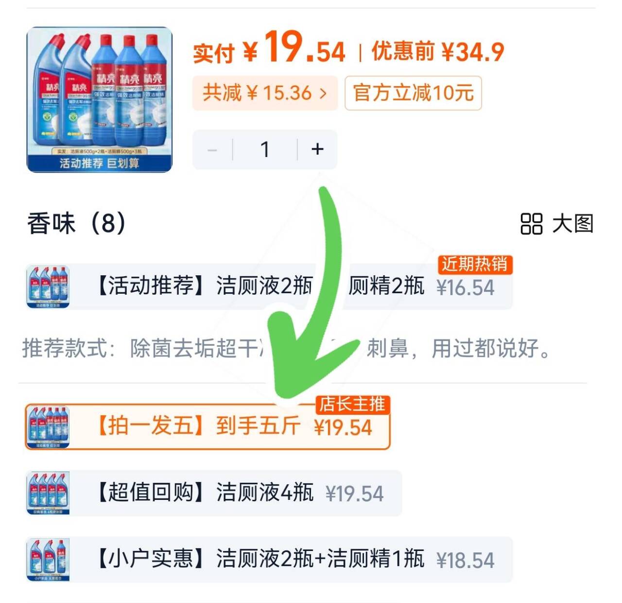 榄菊清香型洁厕灵500ml 拍1发55斤,19元.9!