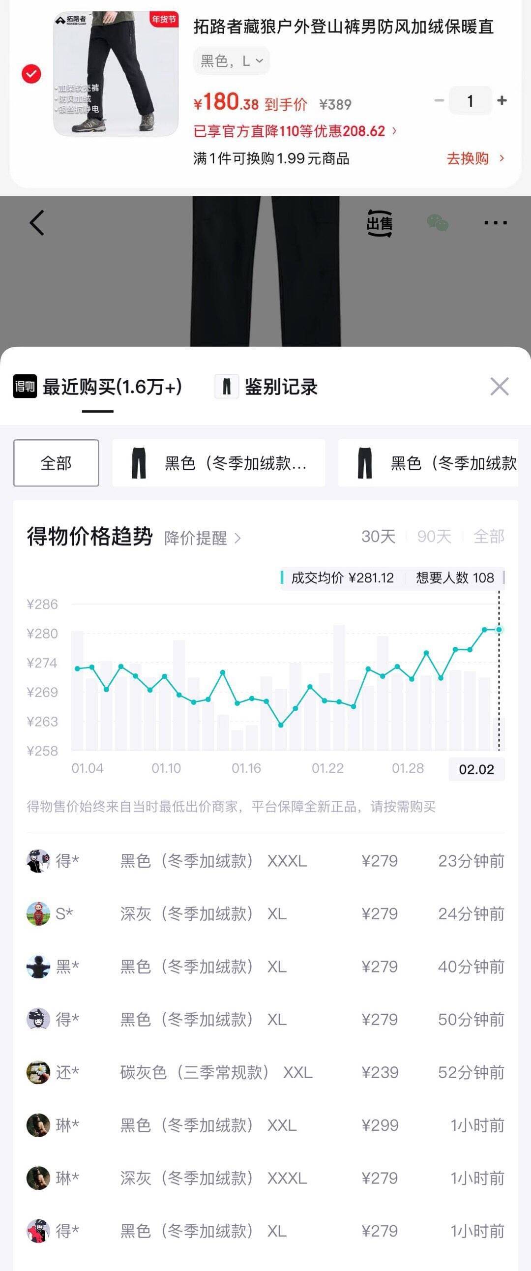拓路者登山裤 货号AHX305119L 凑单到手180锝物279 凑单