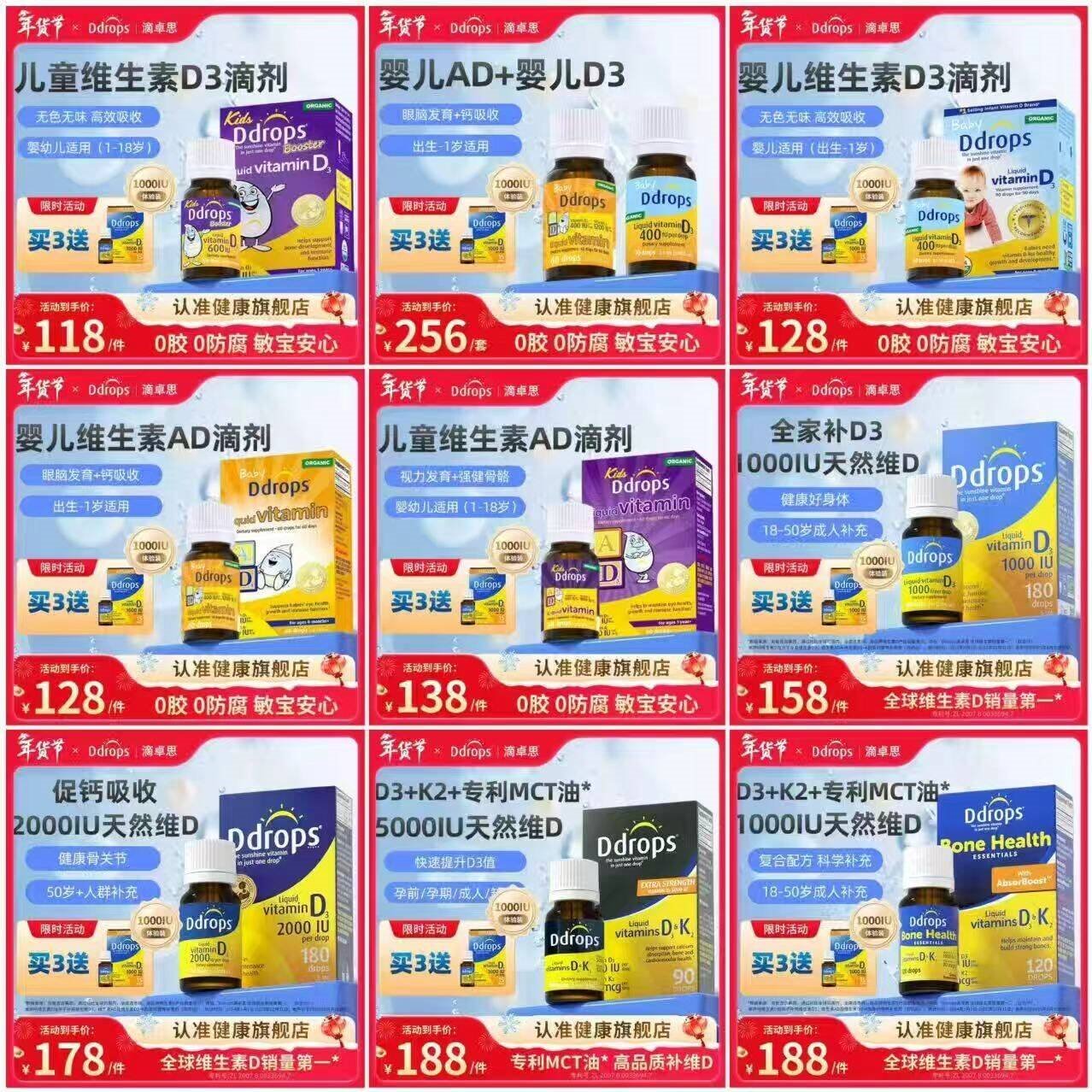 滴卓思自营合集 Plus先领200-25补帖卷 买2件168.2亓 1-18岁D3滴剂