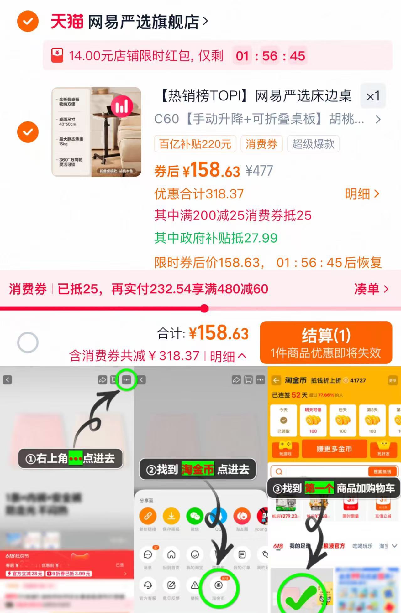 88vip领25肖菲券 弹14亓虹包 右上金币 抵9.54亓 拍c60升降折叠桌叠礼金 国补