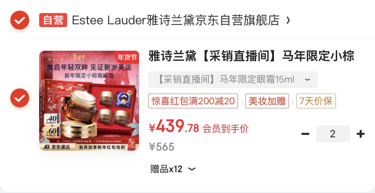 雅诗兰黛马年限定小棕瓶眼霜15ml Plus拍2件879.4亓 赠眼霜5ml*6 0.5ml*4 洪包*2