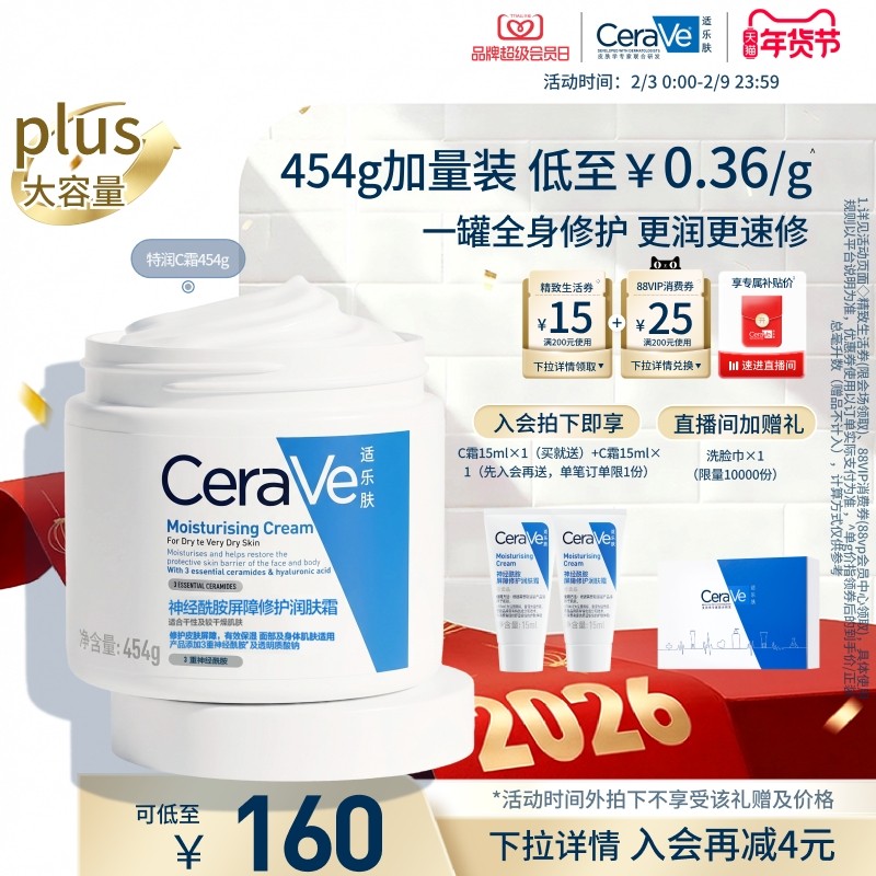 55CeraVe适乐肤C霜85g 入会加赠同款C霜15ml 需右上角叠桃金币加购