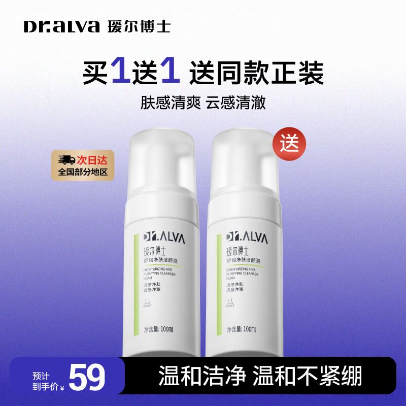 瑷尔博士 舒润净肤洁颜泡100ml*2瓶 实付39.8元,折19.9/支