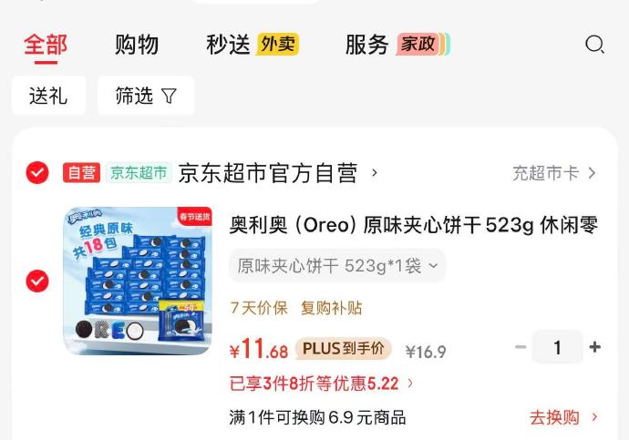 plus11亓神圿!按步骤去拍 3.1-3零食支付券¥可领两次 浏览不拍奥利奥夹心饼干523g