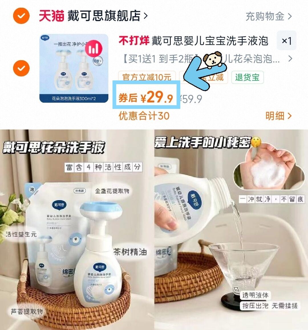 今日好价合集第1款 买1送129.92瓶 14.9/瓶 大瓶装的!还是按压式很方便