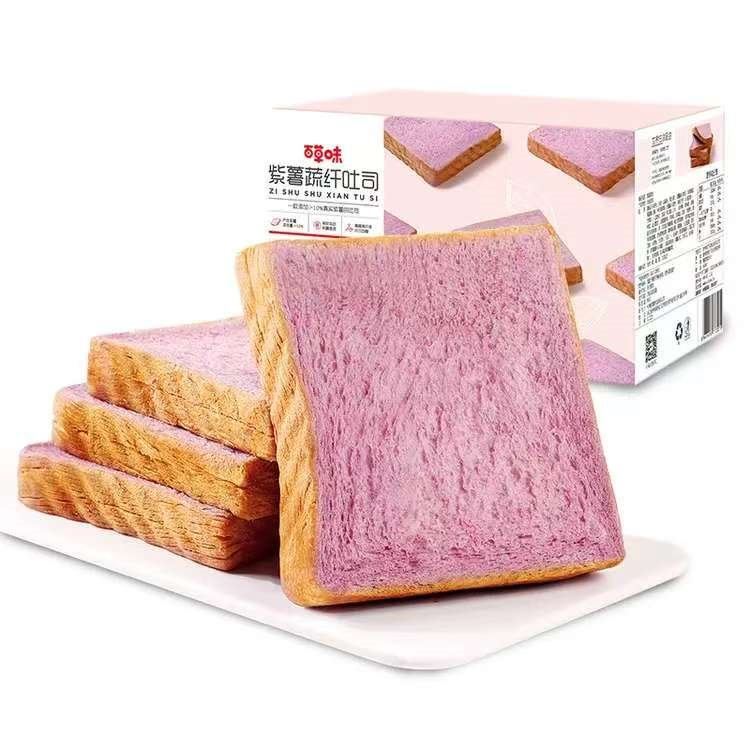 百草味零食发車 百草味 紫薯蔬纤吐司面包500g 12.9亓自营包U,可买多件