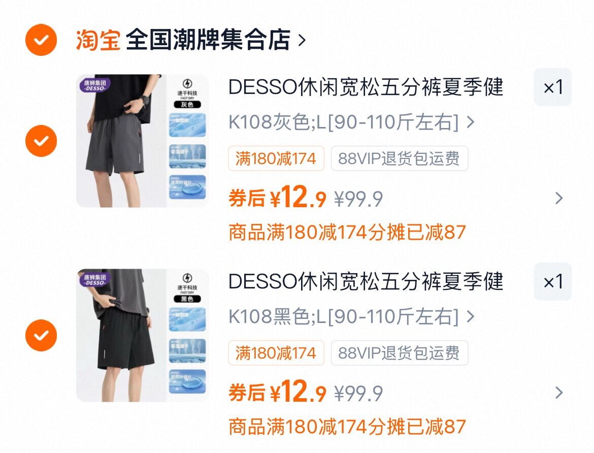 速!拍2件,折12.9亓/件 唐狮DESSO 休闲宽松五分裤