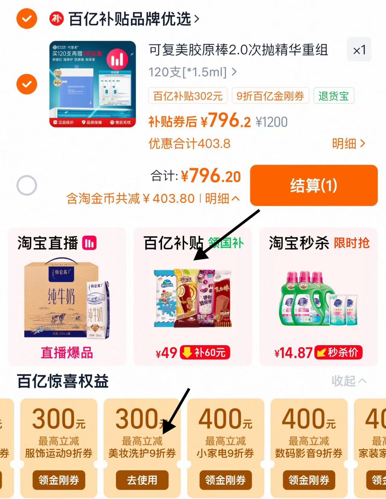 首页 进百亿补贴 领9折金刚券 叠12金币 拍下到手796.2亓 赠大水膜5片*5 洁面如120g*2
