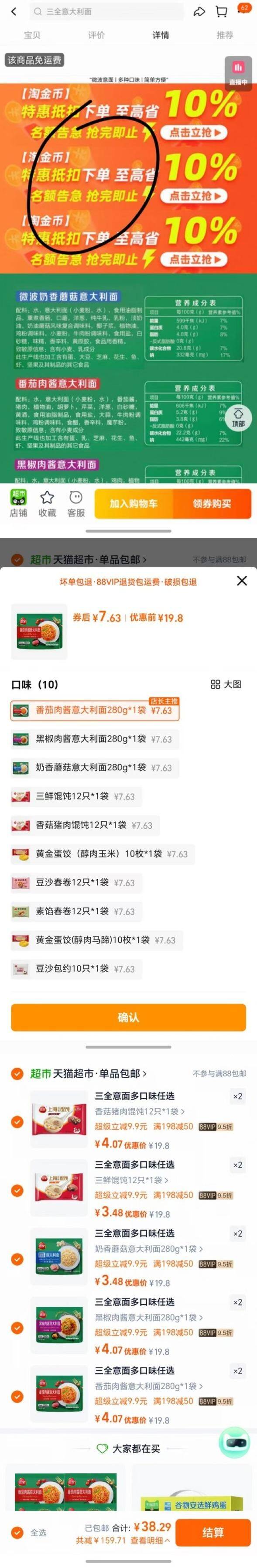 下拉淘金币加购,多口味选10件自由组合